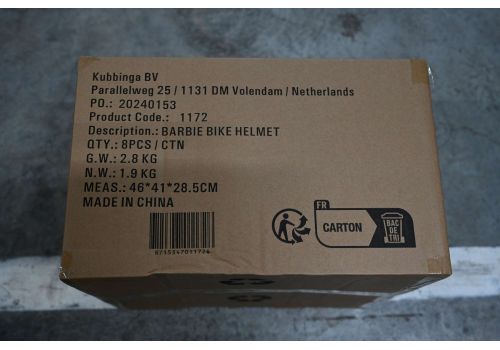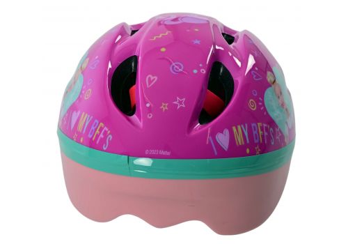 Volare Kinderfietsen beschikt over een grote collectie licentie helmen. Een daarvan is deze prachtige Barbie fietshelm. De mooie roze kleur en de Barbie decoraties geven de helm een perfecte uitstraling. Met de draaiknop is de hoofdomtrek van de helm verstelbaar van 52 tot 56 cm. Daarbij is de onderkant van de helm ook bedekt. De helm weegt slechts 200 gram. Dat maakt hem extra licht en dus makkelijk te dragen. De helm is naar de strengste eisen van het TÜV/GS goedgekeurd.