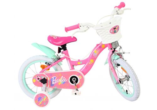 De Barbie 14 inch kinderfiets combineert stijl, veiligheid en plezier – perfect voor elk avontuur in Barbie-stijl.