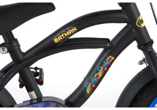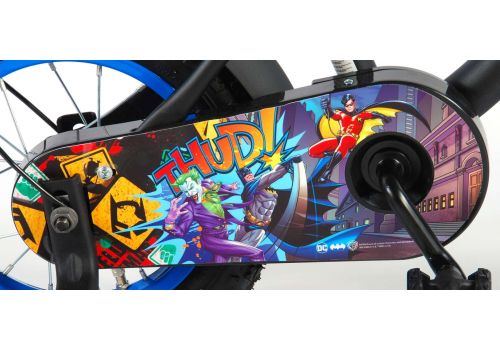 Veiligheid staat voorop! Daarom heeft deze gave fiets een handrem en terugtraprem en een gesloten kettingkast. Daarnaast heeft de fiets afneembare zijwieltjes om snel te leren fietsen, een bel, en reflectoren in de trappers. Ook aan het comfort is gedacht. De mooie zwarte Batman fiets met blauwe accenten heeft extra lange spatborden om al het vuil tegen te houden, een aangenaam zacht zadel en een uniek frame dat wel tegen een stootje kan. Om zo lang mogelijk van de fiets te kunnen genieten zijn het zadel en stuur in hoogte verstelbaar. Kortom: een topkwaliteit fiets waar uw kind nog jaren van kan genieten!