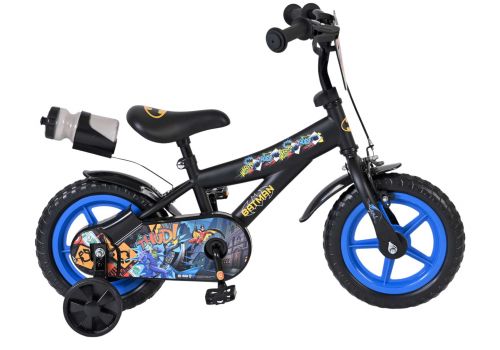 Met de Batman 12 inch jongensfiets wordt leren fietsen een stoer avontuur. Deze kinderfiets is perfect voor de eerste veilige meters en is uitgerust met massieve EVA banden. Daardoor rijdt de fiets licht en comfortabel en heb je geen zorgen over lekke banden. Deze fiets heeft een doortrapsysteem waarmee het kind voor - als achteruit kan fietsen. Ook beschikt de fiets over 1 handrem.