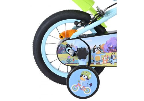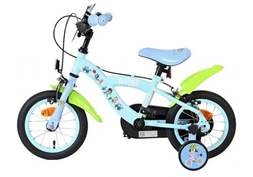 Voor de allerkleinsten die dol zijn op Bluey is er nu de perfecte eerste fiets: de 12 inch Bluey kinderfiets van Volare! Deze vrolijke lichtblauwe fiets, afgewerkt met neon groene spatborden, zorgt meteen voor een grote glimlach op elk gezicht. Met een stevige constructie en kleurrijke Bluey-afbeeldingen op het frame én op het stoere voorplaatje, wordt elke rit een vrolijk avontuur met hun favoriete tv-heldin.