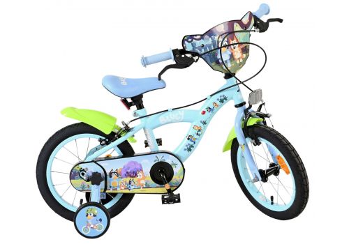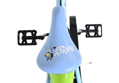 Voor jonge Bluey-fans die klaar zijn voor hun eigen fietsavonturen, is er de 14 inch Bluey kinderfiets van Volare! Deze vrolijke lichtblauwe fiets met neon groene spatborden springt meteen in het oog en is volledig in stijl van de populaire tv-heldin Bluey. Met kleurrijke prints op het frame én een stoer voorplaatje met Bluey’s gezicht is elke rit een feest vol herkenning en plezier.