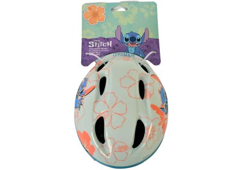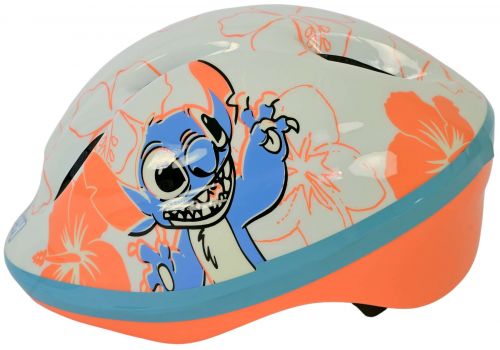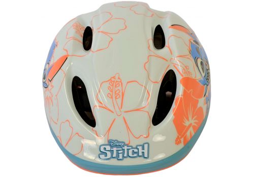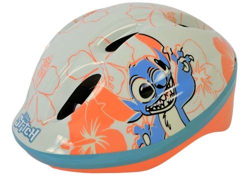Volare Kinderfietsen beschikt over een grote collectie licentie helmen. Een daarvan is deze prachtige Disney Stitch fietshelm. De mooie cremé koraal blauwe kleur en de Stitch decoraties geven de helm een perfecte uitstraling. Met de draaiknop is de hoofdomtrek van de helm verstelbaar van 52 tot 56 cm. Daarbij is de onderkant van de helm ook bedekt. De helm weegt slechts 200 gram. Dat maakt hem extra licht en dus makkelijk te dragen. De helm is naar de strengste eisen van het TÜV/GS goedgekeurd.