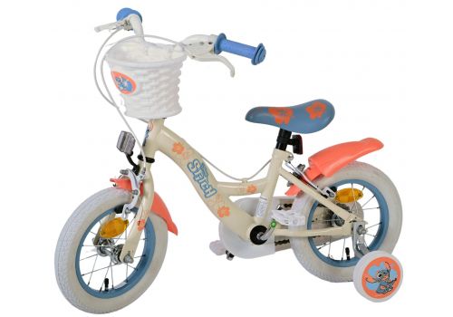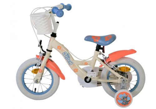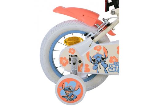 Disney Stitch Kinderfiets - Meisjes - 12 inch - Twee handremmen - Crème Koraal Blauw