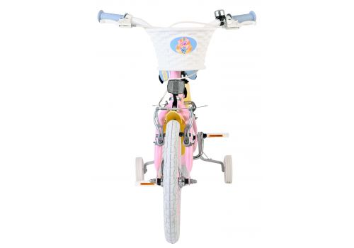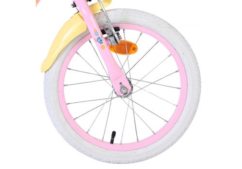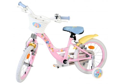 De Disney Stitch 16 inch kinderfiets is een echte blikvanger! Met haar vrolijke lichtroze frame en zonnig gele spatborden brengt deze fiets meteen een glimlach op ieders gezicht. Het leuke mandje voorop maakt de fiets extra speels en ideaal om favoriete spulletjes mee te nemen.