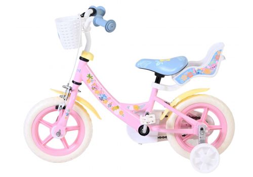 Voor extra stabiliteit tijdens het leren fietsen is de Stitch fiets voorzien van afneembare zijwielen. Daarnaast is de fiets uitgerust met een mandje aan de voorkant voor kleine spulletjes en een poppenzitje aan de achterzijde, zodat favoriete knuffels of poppen altijd mee kunnen op avontuur.