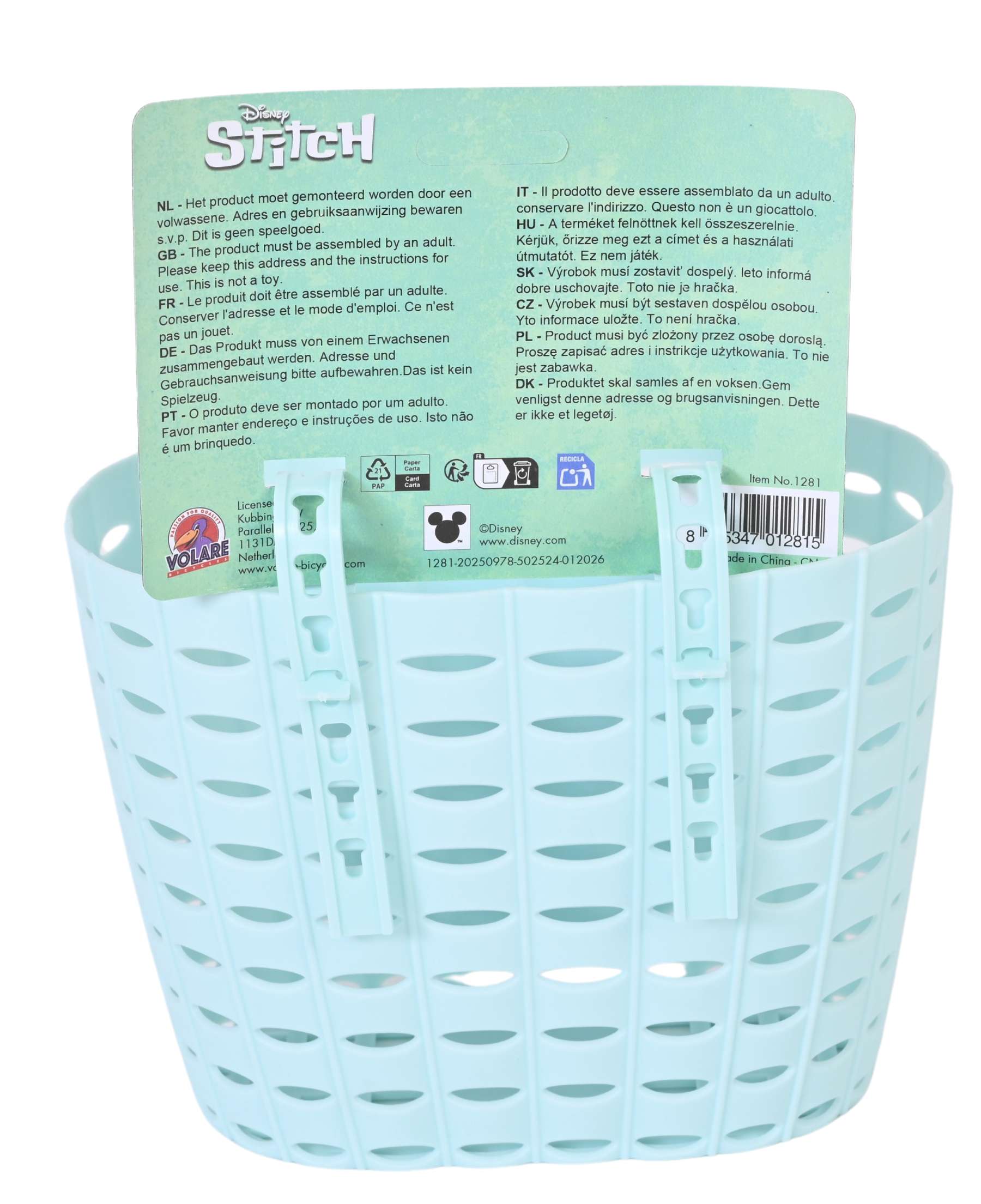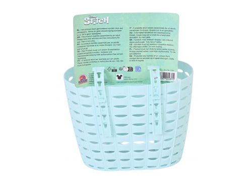 Altijd klaar voor actie met het lichte Stitch fietsmandje! Dit stevige kunststof mandje is versierd met een stoere afbeelding van je vrolijke vriendje Stitch en is perfect voor jonge avonturiers die graag hun favoriete spullen meenemen op pad.
