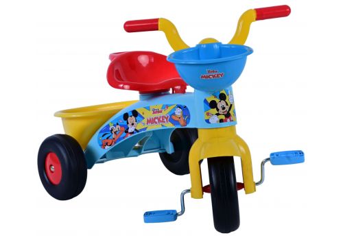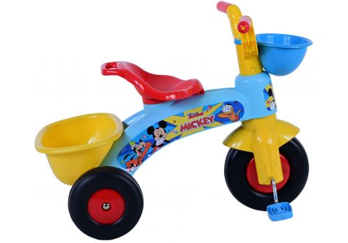 De driewieler is in een blauwe kleur en voorzien van mooie Disney Mickey afbeeldingen. De driewieler heeft een mandje voor en achter, zodat uw kindje zijn/haar favoriete speelgoed mee kan nemen.