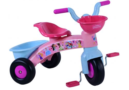 De driewieler is in een roze kleur en voorzien van mooie Disney Princess afbeeldingen. De driewieler heeft een mandje voor en achter, zodat uw kindje zijn/haar favoriete speelgoed mee kan nemen.