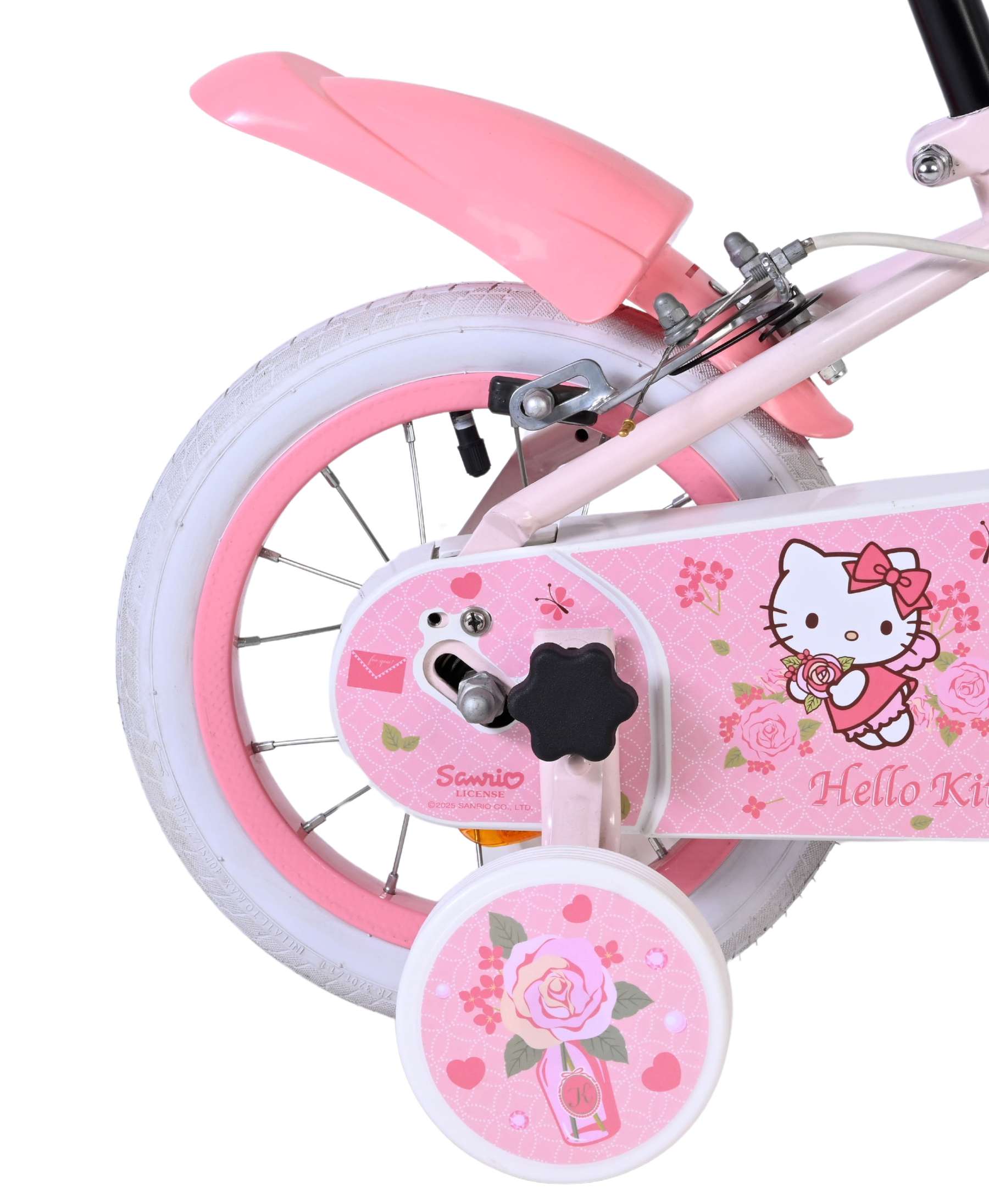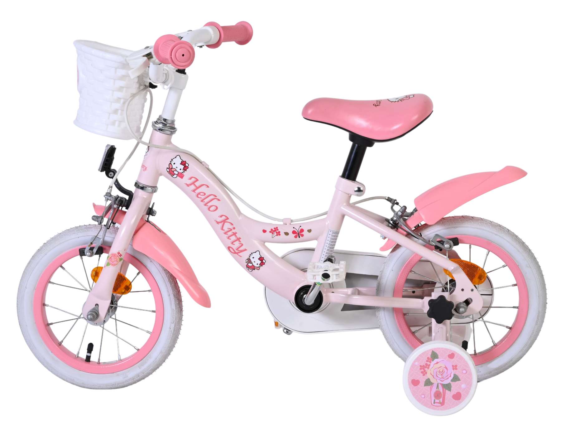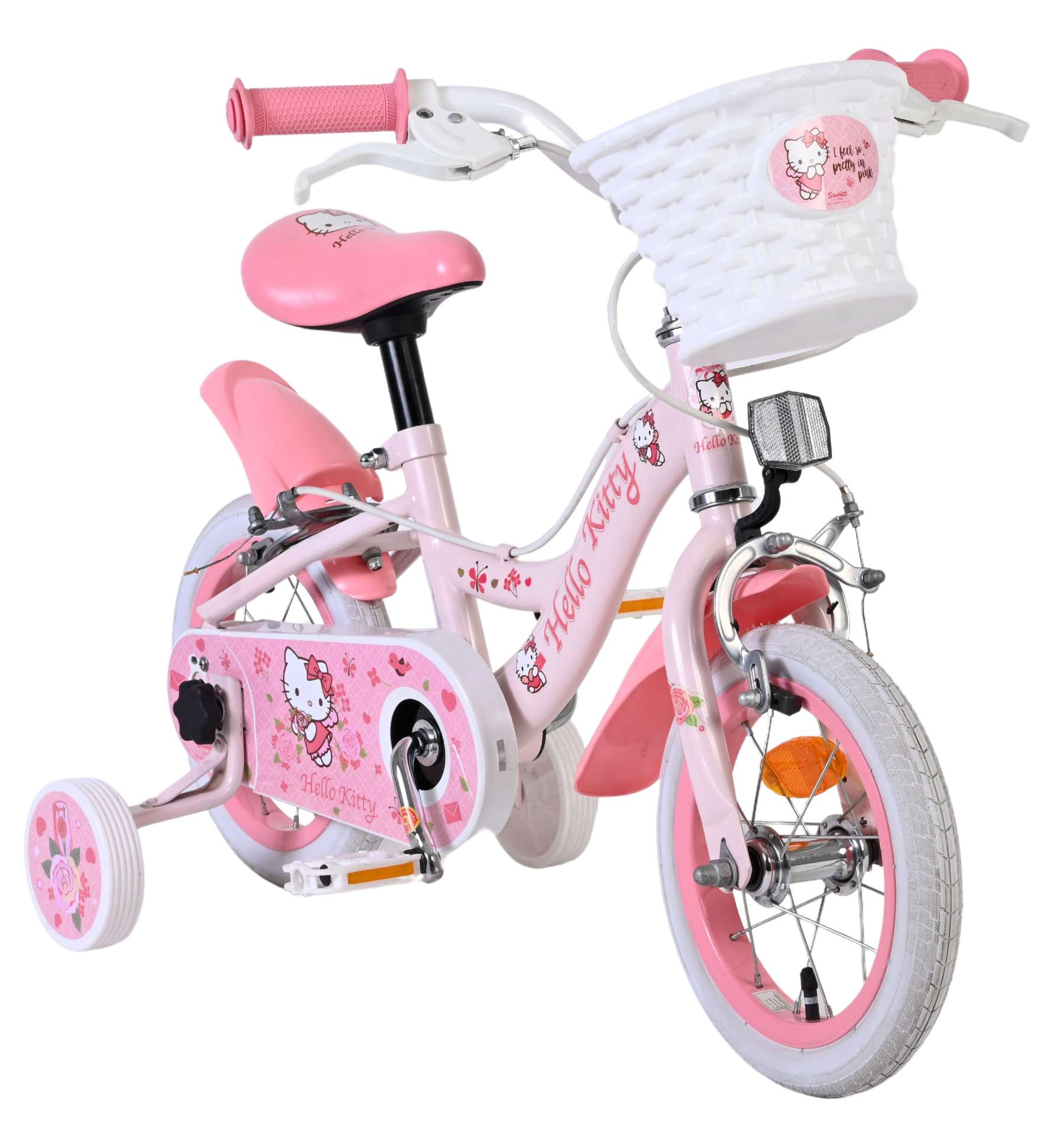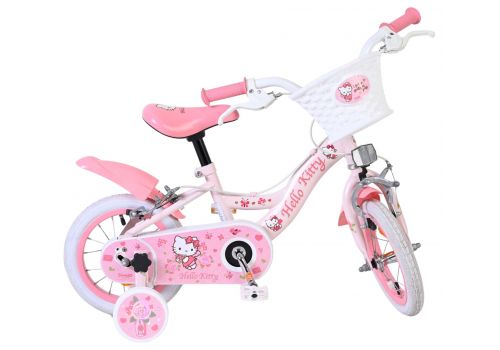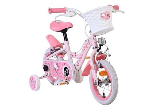 Met de Volare Hello Kitty 12 inch kinderfiets in lichtroze wordt leren fietsen een feestje. Deze vrolijke fiets is ontworpen om jonge fietsers een veilige en comfortabele start te geven, met een stabiele en kindvriendelijke opbouw.