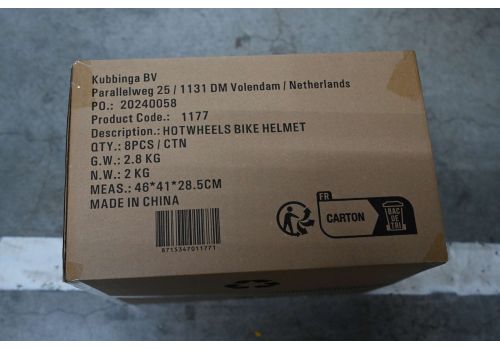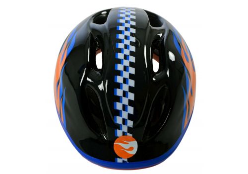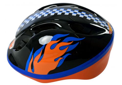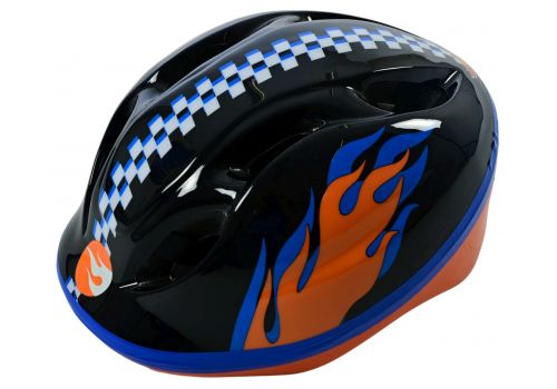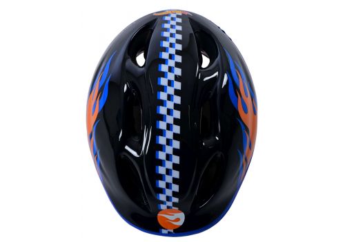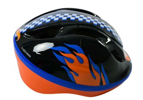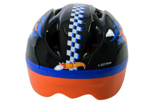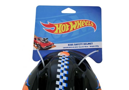 Volare Kinderfietsen beschikt over een grote collectie licentie helmen. Een daarvan is deze prachtige Hot Wheels fietshelm. De zwarte kleur en de race decoraties geven de helm een perfecte uitstraling. Met de draaiknop is de hoofdomtrek van de helm verstelbaar van 52 tot 56 cm. Daarbij is de onderkant van de helm ook bedekt. De helm weegt slechts 200 gram. Dat maakt hem extra licht en dus makkelijk te dragen. De helm is naar de strengste eisen van het TÜV/GS goedgekeurd.