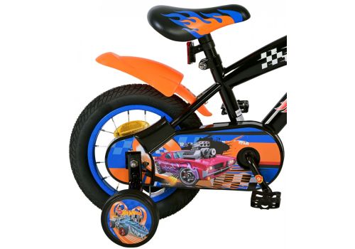 Veiligheid staat voorop! Daarom heeft deze gave fiets een handrem en terugtraprem en een gesloten kettingkast. Daarnaast heeft de fiets afneembare zijwieltjes om snel te leren fietsen en reflectoren voor en achter. Ook aan het comfort is gedacht. De mooie zwarte Hot Wheels fiets met blauw en oranje accenten heeft een aangenaam zacht zadel en een uniek frame dat wel tegen een stootje kan. Om zo lang mogelijk van de fiets te kunnen genieten zijn het zadel en stuur in hoogte verstelbaar. Kortom: een topkwaliteit fiets waar uw kind nog jaren van kan genieten!