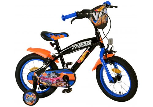 Veiligheid staat voorop! Daarom heeft deze gave fiets een handrem en terugtraprem en een gesloten kettingkast. Daarnaast heeft de fiets afneembare zijwieltjes om snel te leren fietsen, en reflectoren in de trappers. Ook aan het comfort is gedacht. De mooie zwarte Hot Wheels fiets met blauw en oranje accenten heeft een aangenaam zacht zadel en een uniek frame dat wel tegen een stootje kan. Om zo lang mogelijk van de fiets te kunnen genieten is het zadel in hoogte verstelbaar. Kortom: een topkwaliteit fiets waar uw kind nog jaren van kan genieten!