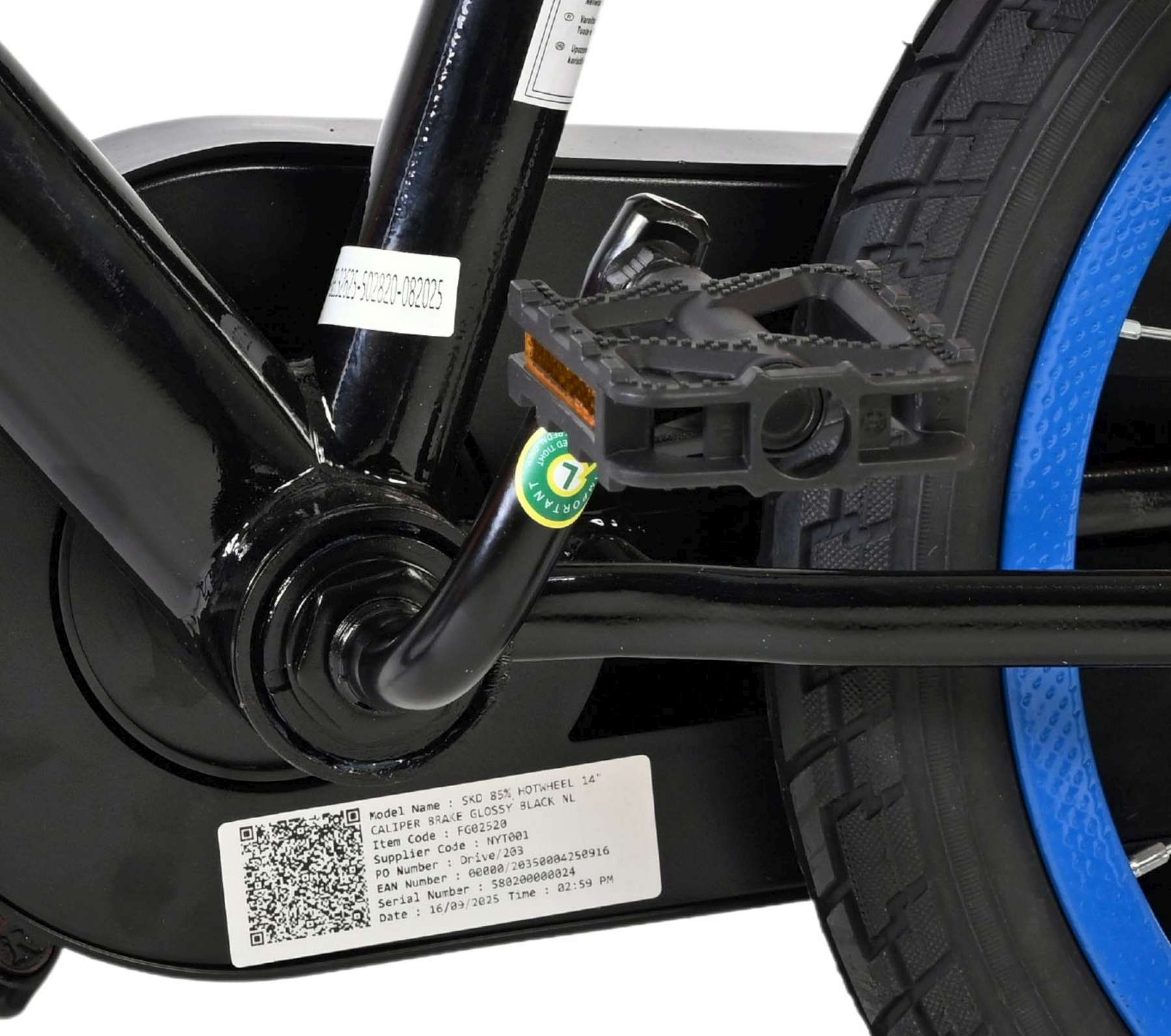 Voor extra veiligheid is de fiets uitgerust met reflectoren in de wielen en reflectoren aan de voor- en achterkant, zodat je kind goed zichtbaar is in het verkeer.