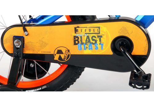 Veiligheid staat voorop! Daarom heeft deze gave fiets een handrem en terugtraprem en afneembare zijwieltjes. Daarnaast heeft de fiets reflectoren in de trappers. Ook aan het comfort is gedacht. De mooie satijn blauwe NERF fiets met oranje accenten heeft een extra zacht zadel en handvaten, stoere brede banden en een bidon in houder zodat uw kind altijd iets te drinken bij zich heeft. Om zo lang mogelijk van de fiets te kunnen genieten zijn het zadel en stuur in hoogte verstelbaar. Kortom: een topkwaliteit fiets waar uw kind nog jaren van kan genieten!
