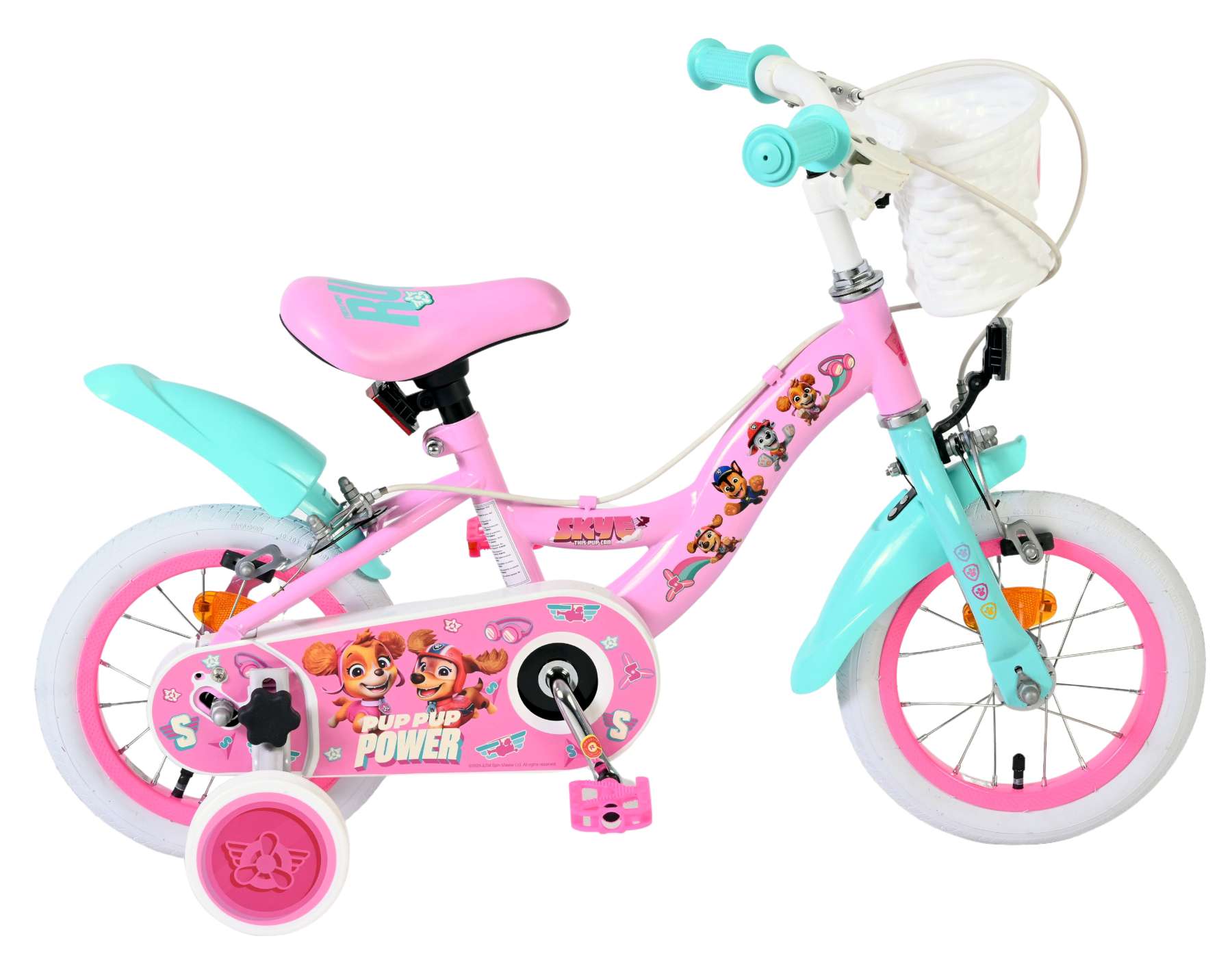 De afneembare zijwieltjes helpen kinderen stap voor stap leren fietsen, en zodra ze klaar zijn om zelfstandig te rijden, kunnen de zijwieltjes eenvoudig worden verwijderd. Het zadel en stuur zijn in hoogte verstelbaar, zodat de fiets met je kind meegroeit. Voorop de fiets zit een leuk mandje met een vrolijke Paw Patrol-afbeelding, perfect om een knuffel of speelgoed mee te nemen.