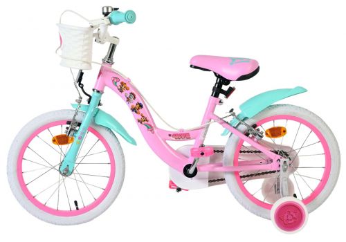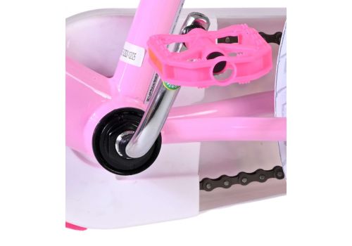 De afneembare zijwieltjes helpen kinderen stap voor stap leren fietsen, en zodra ze klaar zijn om zelfstandig te rijden, kunnen de zijwielen eenvoudig worden verwijderd. Voorop de fiets zit een handig mandje om spulletjes mee te nemen en achterop een leuk poppenzitje, zodat de favoriete pop altijd mee kan op avontuur. Het zadel en stuur zijn in hoogte verstelbaar, zodat de fiets met je kind meegroeit. Daarnaast is de fiets voorzien van een bel, zodat iedereen weet dat er een trotse kleine fietser aankomt.