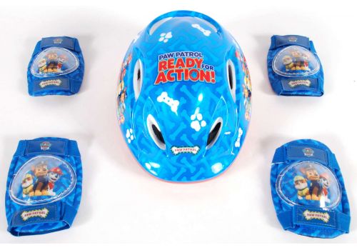 Paw Patrol Protectionset. Deze super mooie Paw Patrol Protectionset is een echte jongensset! De set bevat een helm, twee kniebeschermers en twee elleboogbeschermers. De lichtgewicht helm is uitgevoerd in de Deluxe versie, met meerdere gaten om het hoofd van uw kind koel te houden. De helm is makkelijk verstelbaar met een draaiknop in maat 51-55 cm, hij groeit met uw kind mee en kan daardoor langere tijd gebruikt worden. De knie- en elleboogbeschermers zijn beiden voorzien van stevige elastische bandjes die de beschermers tijdens het avontuur van uw kind op hun plaats houden.