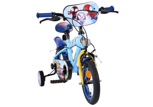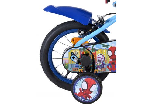 Veiligheid staat voorop! Daarom heeft deze gave fiets twee handremmen (geen terugtraprem) en een gesloten kettingkast. Daarnaast heeft de fiets afneembare zijwieltjes om snel te leren fietsen. Ook aan het comfort is gedacht. De mooie lichtblauwe Spidey fiets met donkerblauwe en gele accenten heeft een aangenaam zacht zadel en een extra stevig frame dat wel tegen een stootje kan. Om zo lang mogelijk van de fiets te kunnen genieten zijn het zadel en stuur in hoogte verstelbaar. Kortom: een topkwaliteit fiets waar uw kind nog jaren van kan genieten!