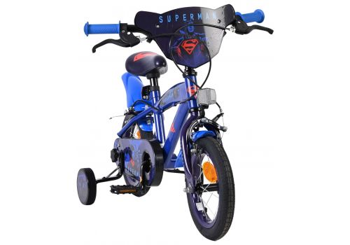 Met de Volare Superman 12 inch kinderfiets begint ieder avontuur vliegend! Deze donkerblauwe fiets met de iconische Superman-voorplaat laat kinderen direct in de huid kruipen van hun favoriete superheld.