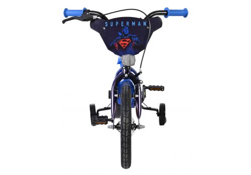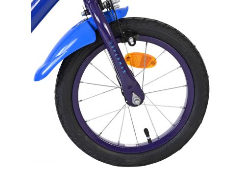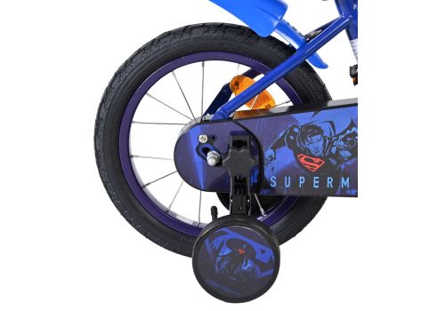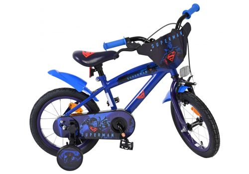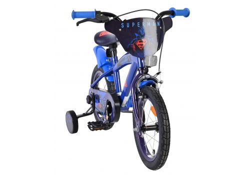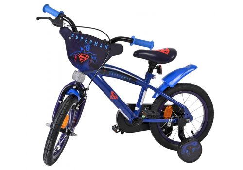 De Superman 14 inch kinderfiets is gemaakt voor jonge helden die klaar zijn voor hun eigen avontuur! Deze stoere fiets in donkerblauw heeft een krachtig Superman-ontwerp met een coole voorplaat met het iconische Superman-logo; perfect voor elke kleine superheld.