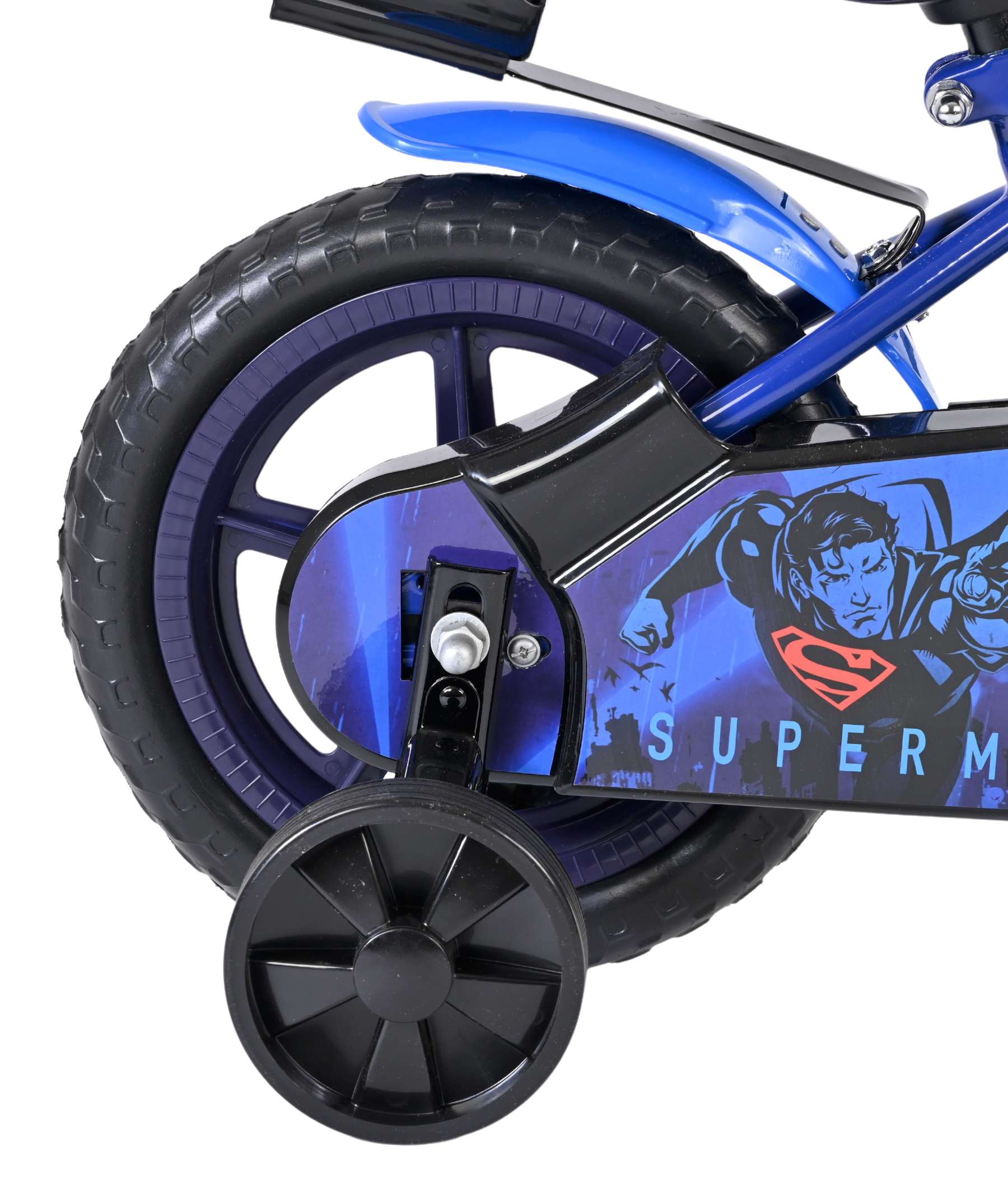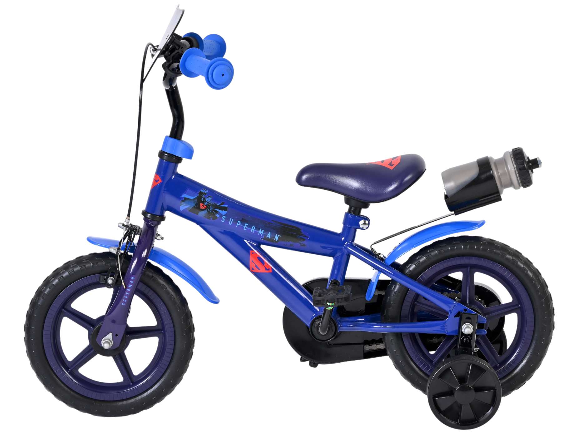Voor extra stabiliteit tijdens het oefenen is de fiets voorzien van afneembare zijwielen. Die helpen bij het wegrijden en maken bochten nemen makkelijker, en zijn eenvoudig te verwijderen zodra het zelfstandig fietsen goed gaat. Het stuur en zadel zijn in hoogte verstelbaar, zodat de fiets altijd netjes op maat te zetten is en langere tijd mee kan. Ook praktisch is de meegeleverde drinkfles, ideaal voor onderweg of een korte pauze na het oefenen. Zo is je kind helemaal klaar om als echte Superman-held de straat op te gaan.