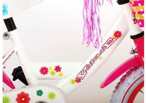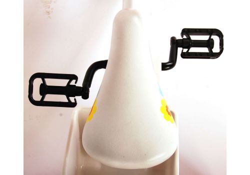 Veiligheid staat voorop! Daarom heeft deze gave fiets een handrem en terugtraprem en een gesloten kettingkast. Daarnaast heeft de fiets afneembare zijwieltjes, reflectoren in de trappers en een leuke bel. Ook aan het comfort is gedacht. De mooie gebloemde witte Volare fiets heeft een poppenzitje onder het zadel, een mandje om alle spullen mee te nemen, super stevig frame en leuke versiering aan het stuur. Om zo lang mogelijk van de fiets te kunnen genieten zijn het zadel en stuur in hoogte verstelbaar. Kortom: een topkwaliteit fiets waar uw kind nog jaren van kan genieten!