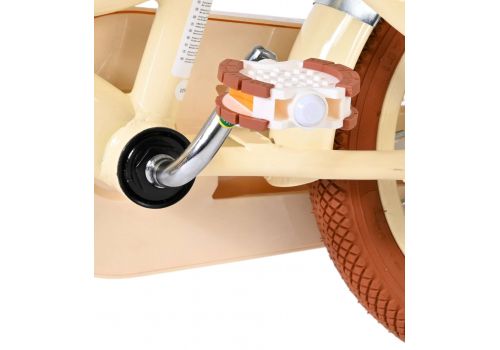 Veiligheid staat voorop bij de Volare Ashley 12 inch kinderfiets. Daarom is deze mooie creme fiets uitgerust met zowel een terugtraprem als een handrem. Om het leren fietsen zo makkelijk mogelijk te maken, is de fiets voorzien van afneembare zijwielen die extra stabiliteit geven in het begin. Zodra je kind er klaar voor is, kunnen deze eenvoudig verwijderd worden.