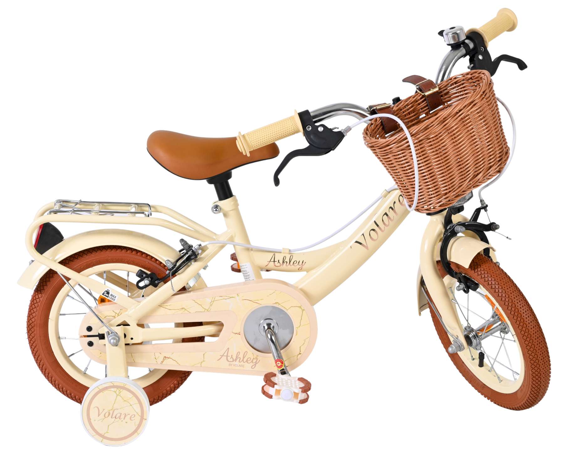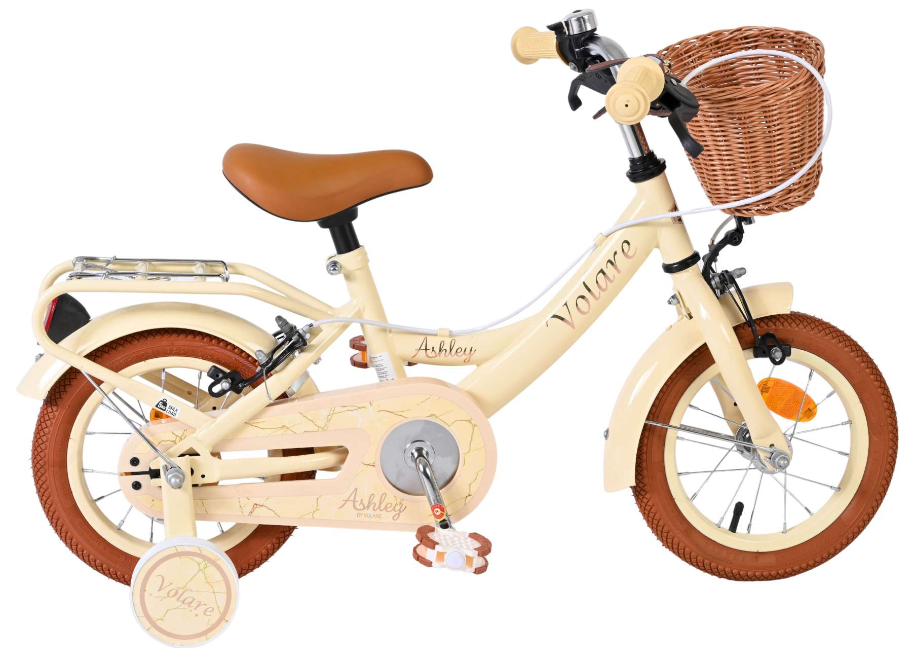 Ook praktisch gebruik is meegenomen in het ontwerp: het mandje aan de voorkant is ideaal voor kleine spulletjes en de stevige achterdrager biedt extra gemak. Met zijn frisse creme kleur en complete afwerking is de Volare Ashley 12 inch kinderfiets een betrouwbare en vrolijke keuze voor jonge fietsers.