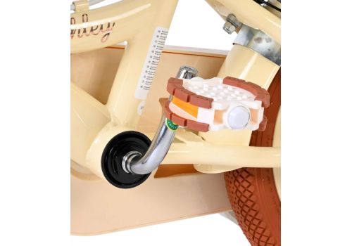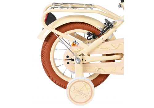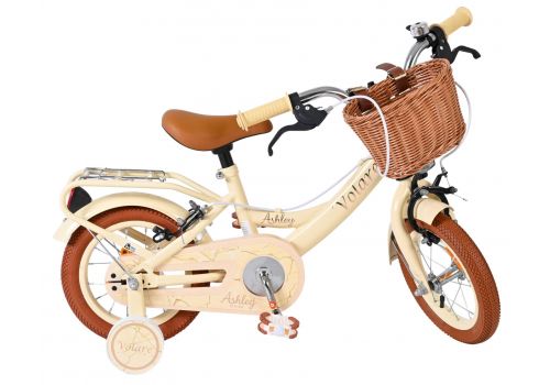 De Volare Ashley 12 inch kinderfiets is een vrolijke en comfortabele fiets die helemaal klaar is voor de eerste fietservaringen van je kind. Deze mooie creme fiets is uitgerust met twee handremmen (geen terugtraprem), waardoor je kind op een veilige en vertrouwde manier leert remmen. De afneembare zijwielen zorgen voor extra stabiliteit in het begin en kunnen eenvoudig verwijderd worden zodra je kind klaar is om zelfstandig te fietsen.