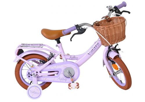 De Volare Ashley 12 inch kinderfiets is een vrolijke en comfortabele fiets die helemaal klaar is voor de eerste fietservaringen van je kind. Deze mooie lila fiets is uitgerust met twee handremmen (geen terugtraprem), waardoor je kind op een veilige en vertrouwde manier leert remmen. De afneembare zijwielen zorgen voor extra stabiliteit in het begin en kunnen eenvoudig verwijderd worden zodra je kind klaar is om zelfstandig te fietsen.