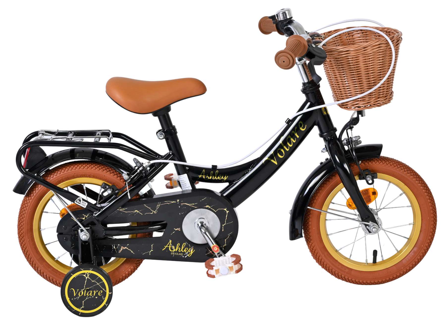 Ook praktisch gebruik is meegenomen in het ontwerp: het mandje aan de voorkant is ideaal voor kleine spulletjes en de stevige achterdrager biedt extra gemak. Met zijn frisse zwarte kleur en complete afwerking is de Volare Ashley 12 inch kinderfiets een betrouwbare en vrolijke keuze voor jonge fietsers.
