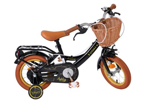 De Volare Ashley 12 inch kinderfiets is een vrolijke en comfortabele fiets die helemaal klaar is voor de eerste fietservaringen van je kind. Deze mooie zwarte fiets is uitgerust met twee handremmen (geen terugtraprem), waardoor je kind op een veilige en vertrouwde manier leert remmen. De afneembare zijwielen zorgen voor extra stabiliteit in het begin en kunnen eenvoudig verwijderd worden zodra je kind klaar is om zelfstandig te fietsen.