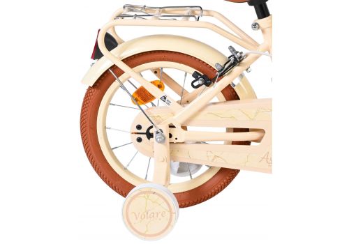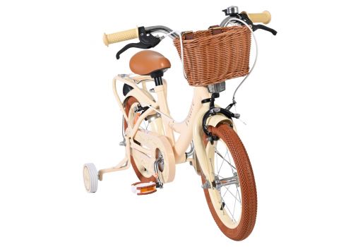 De Volare Ashley 14 inch kinderfiets is een vrolijke en comfortabele fiets die perfect past bij de volgende stap in het leren fietsen. Deze mooie creme fiets is uitgerust met twee handremmen (geen terugtraprem), zodat je kind op een gecontroleerde en vertrouwde manier leert remmen. De afneembare zijwielen bieden extra stabiliteit in het begin en kunnen eenvoudig verwijderd worden zodra je kind zelfstandig kan fietsen.