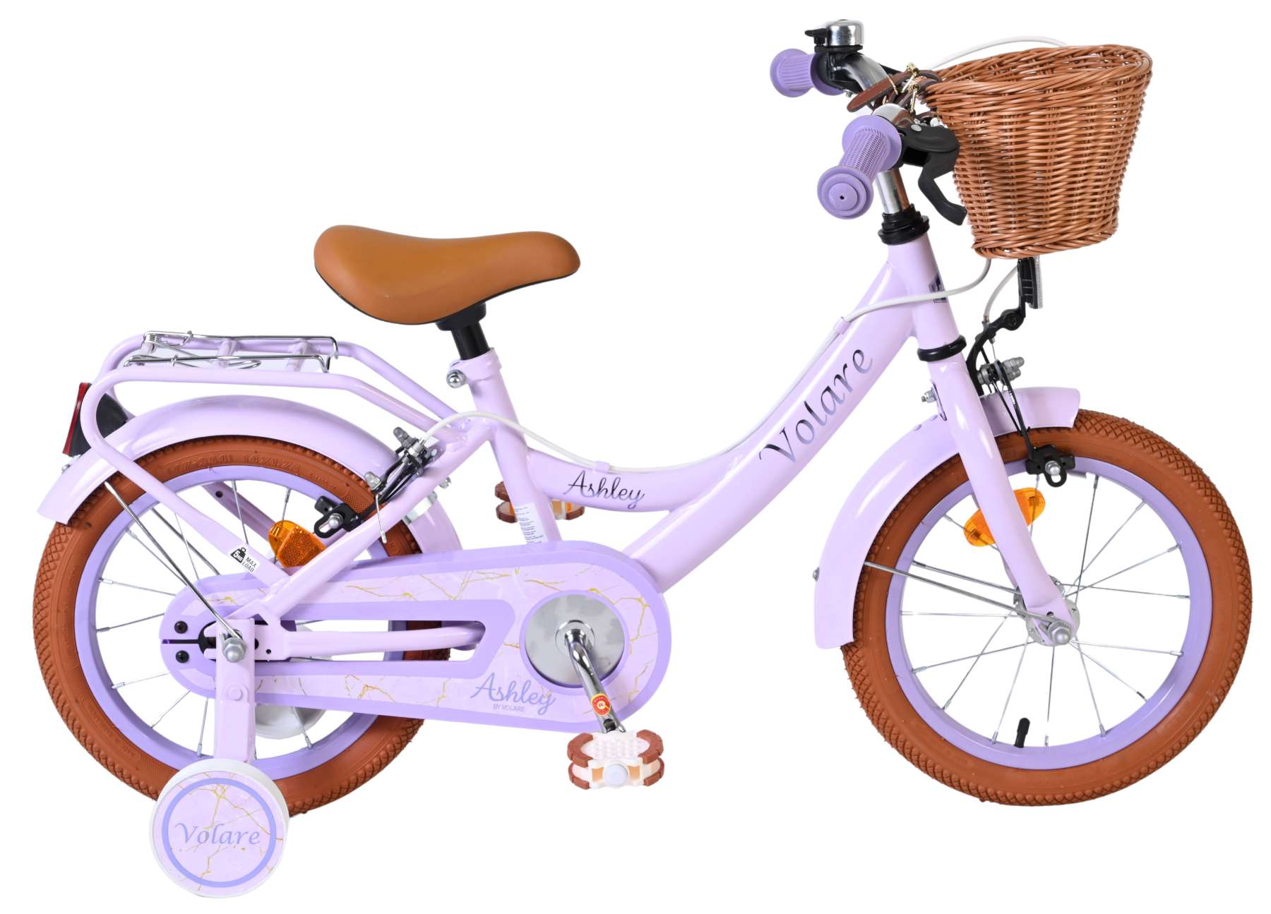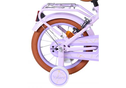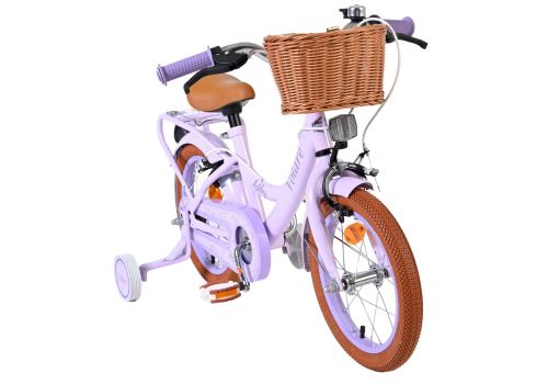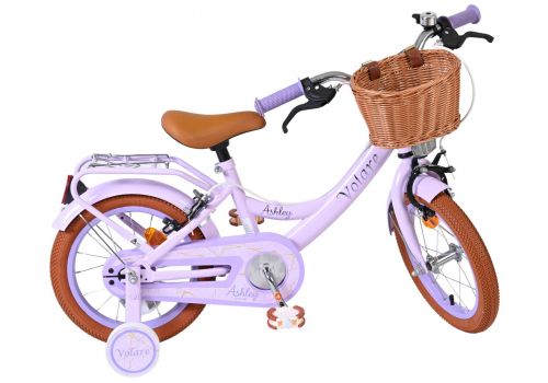 De Volare Ashley 14 inch kinderfiets is een vrolijke en comfortabele fiets die perfect past bij de volgende stap in het leren fietsen. Deze mooie lila fiets is uitgerust met twee handremmen (geen terugtraprem), zodat je kind op een gecontroleerde en vertrouwde manier leert remmen. De afneembare zijwielen bieden extra stabiliteit in het begin en kunnen eenvoudig verwijderd worden zodra je kind zelfstandig kan fietsen.