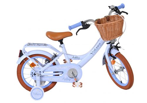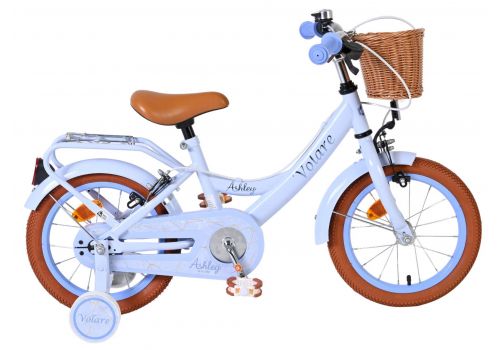 De Volare Ashley 14 inch kinderfiets is een vrolijke en comfortabele fiets die perfect past bij de volgende stap in het leren fietsen. Deze mooie blauwe fiets is uitgerust met twee handremmen (geen terugtraprem), zodat je kind op een gecontroleerde en vertrouwde manier leert remmen. De afneembare zijwielen bieden extra stabiliteit in het begin en kunnen eenvoudig verwijderd worden zodra je kind zelfstandig kan fietsen.