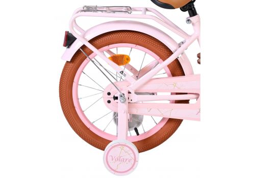 De Volare Ashley 16 inch kinderfiets is een vrolijke en comfortabele fiets die perfect aansluit bij kinderen die al wat zekerder fietsen. Deze mooie roze fiets is uitgerust met een terugtraprem en één handrem, zodat je kind op een natuurlijke manier leert remmen en extra controle heeft tijdens het fietsen. De afneembare zijwielen bieden ondersteuning waar nodig en kunnen eenvoudig verwijderd worden zodra je kind volledig zelfstandig fietst.
