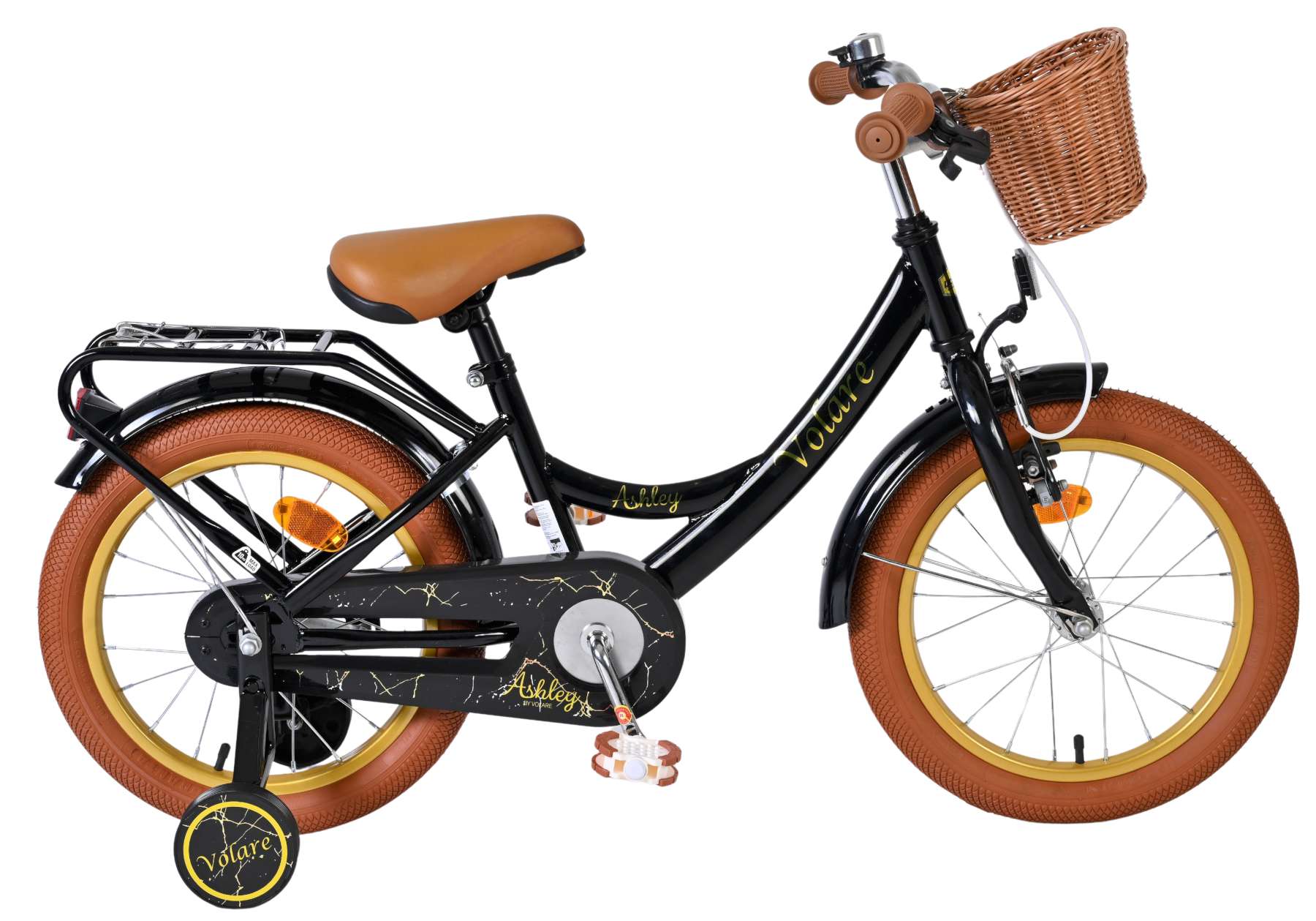 Ook aan gebruiksgemak is gedacht. Het mandje aan de voorkant is ideaal voor het meenemen van kleine spulletjes en de stevige achterdrager zorgt voor extra praktische mogelijkheden. Met zijn frisse zwarte kleur en complete afwerking is de Volare Ashley 16 inch kinderfiets een betrouwbare en leuke fiets voor elke jonge fietser.