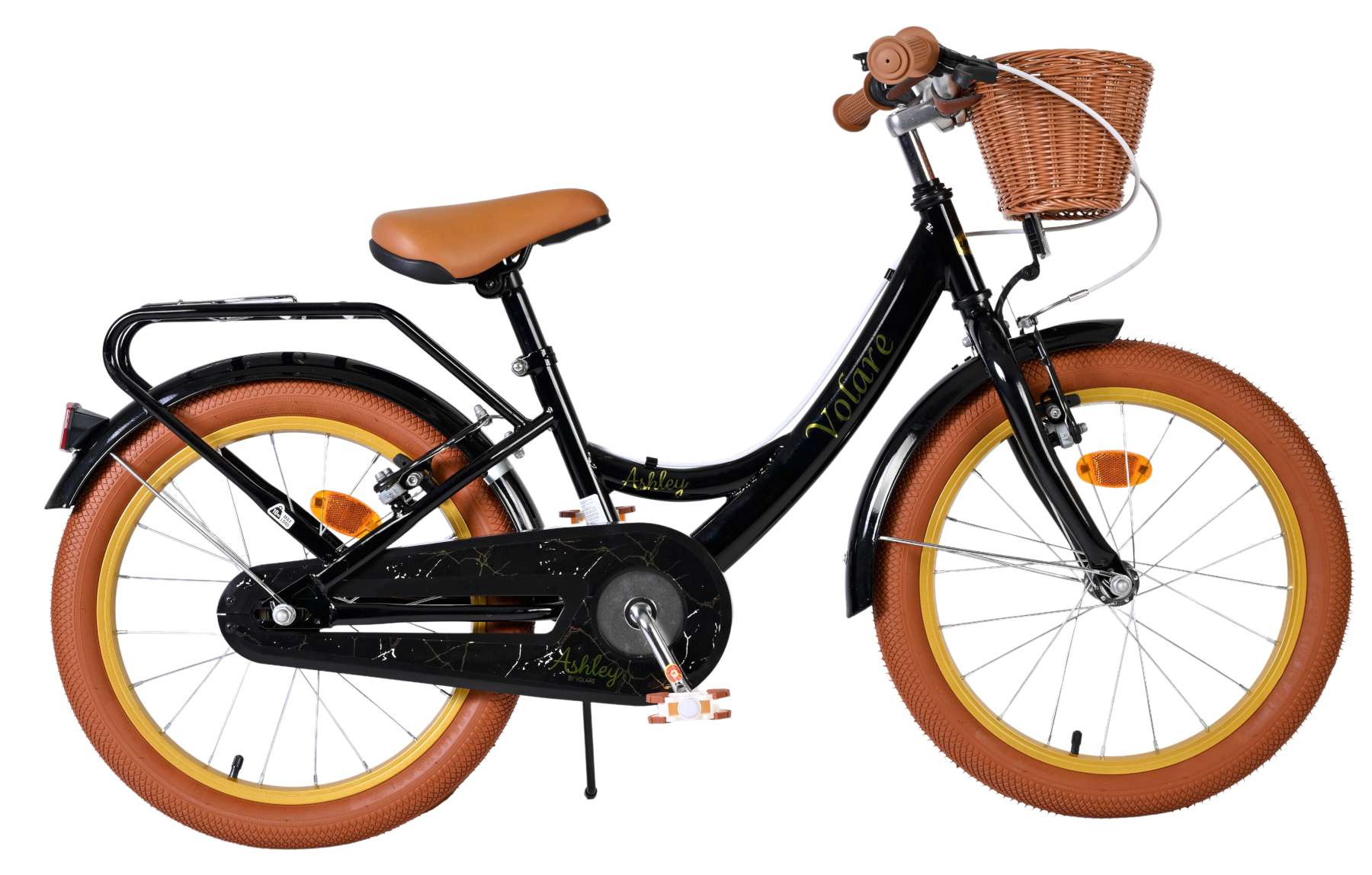 Met zijn frisse zwarte kleur en complete uitrusting is de Volare Ashley 18 inch kinderfiets een fijne en betrouwbare keuze voor dagelijks fietsplezier.