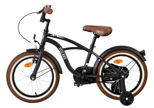 Veiligheid staat voorop! Daarom heeft deze gave fiets een handrem en een terugtraprem, een gesloten kettingkast en afneembare zijwieltjes. Daarnaast heeft de fiets een leuke bel en reflectoren in de wielen voor extra veiligheid. Ook aan het comfort is gedacht. De mooie zwarte Volare fiets met bruine accenten heeft een zacht zadel, een tijdloos design, en een uniek frame dat wel tegen een stootje kan. Om zo lang mogelijk van de fiets te kunnen genieten zijn het zadel en stuur in hoogte verstelbaar.