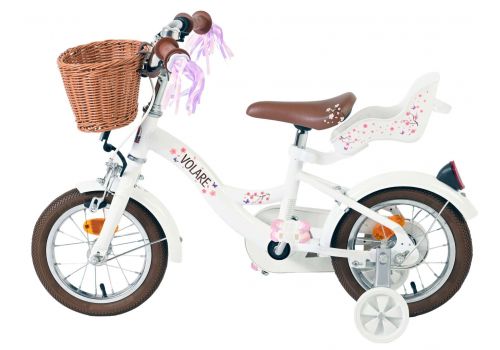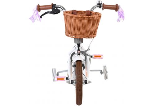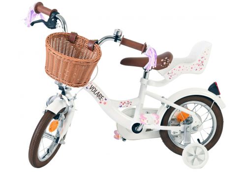 Veiligheid staat voorop! Daarom heeft deze gave fiets een handrem en terugtraprem, afneembare zijwieltjes en een gesloten kettingkast. De fiets heeft reflectoren van voor, achter en in de wielen. Ook aan het comfort is gedacht. De mooie witte Volare fiets heeft een comfortabel zacht zadel, een poppenzitje, een handig rieten mandje en vrolijke handvatstreamers op de fiets op te fleuren Om zo lang mogelijk van de fiets te kunnen genieten zijn het zadel en stuur in hoogte verstelbaar. Wordt geleverd inclusief al het montagemateriaal dat nodig is om de fiets in elkaar te zetten!