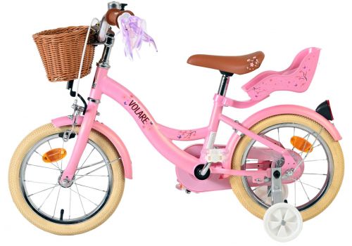 Veiligheid staat voorop! Daarom heeft deze gave fiets een handrem en terugtraprem, afneembare zijwieltjes en een gesloten kettingkast. De fiets heeft reflectoren van voor, achter en in de wielen. Ook aan het comfort is gedacht. De mooie roze Volare fiets heeft een poppenzitje, een comfortabel zacht zadel en een handig rieten mandje. Om zo lang mogelijk van de fiets te kunnen genieten zijn het zadel en stuur in hoogte verstelbaar. Wordt geleverd inclusief al het montagemateriaal dat nodig is om de fiets in elkaar te zetten!