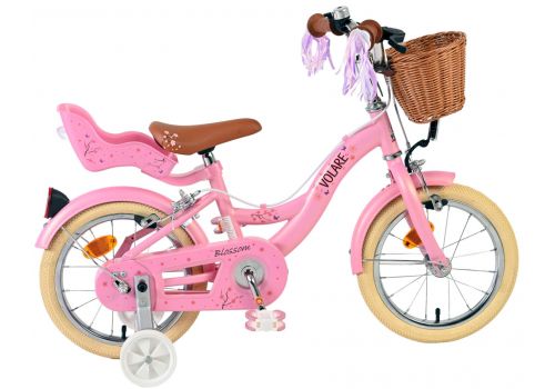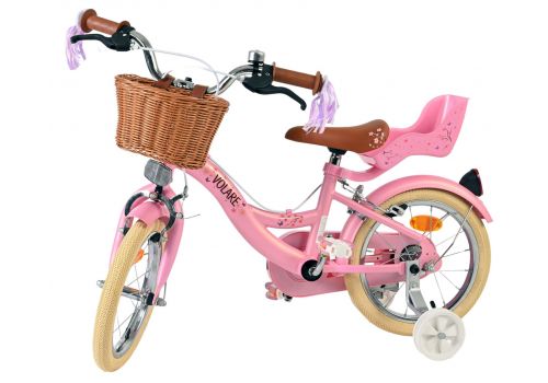 Veiligheid staat voorop! Daarom heeft deze gave fiets geen terugtraprem maar twee handremmen, afneembare zijwieltjes en een gesloten kettingkast. De fiets heeft reflectoren van voor, achter en in de wielen. Ook aan het comfort is gedacht. De mooie roze Volare fiets heeft, een comfortabel zacht zadel, een poppenzitje, vrolijke handvatversieringen en een handig rieten mandje. Om zo lang mogelijk van de fiets te kunnen genieten zijn het zadel en stuur in hoogte verstelbaar. Wordt geleverd inclusief al het montagemateriaal dat nodig is om de fiets in elkaar te zetten!