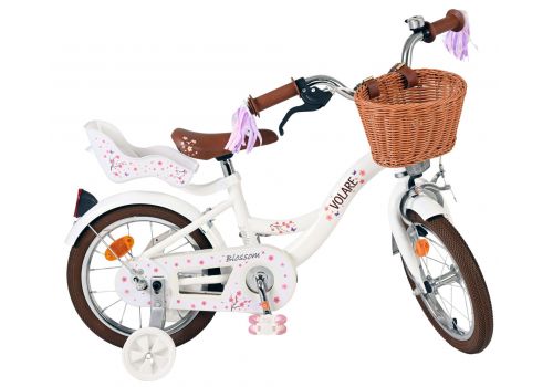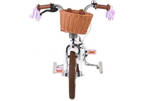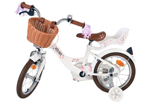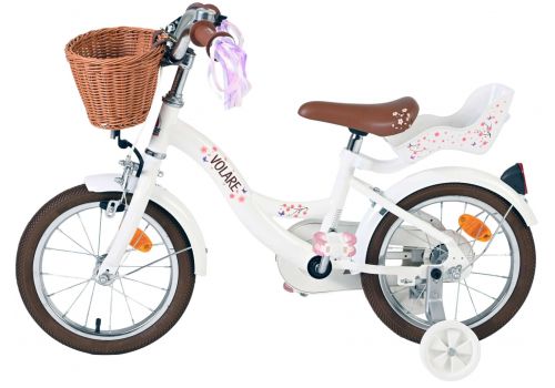 Veiligheid staat voorop! Daarom heeft deze gave fiets een handrem en terugtraprem, afneembare zijwieltjes en een gesloten kettingkast. Ook aan het comfort is gedacht. De mooie witte Volare fiets heeft een poppenzitje, een comfortabel zacht zadel, vrolijke handvatversieringen en een handig rieten mandje. Om zo lang mogelijk van de fiets te kunnen genieten zijn het zadel en stuur in hoogte verstelbaar. Wordt geleverd inclusief al het montagemateriaal dat nodig is om de fiets in elkaar te zetten!