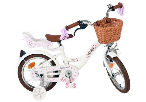 Veiligheid staat voorop! Daarom heeft deze gave fiets een handrem en terugtraprem, afneembare zijwieltjes en een gesloten kettingkast. Ook aan het comfort is gedacht. De mooie witte Volare fiets heeft een poppenzitje, een comfortabel zacht zadel, vrolijke handvatversieringen en een handig rieten mandje. Om zo lang mogelijk van de fiets te kunnen genieten zijn het zadel en stuur in hoogte verstelbaar. Wordt geleverd inclusief al het montagemateriaal dat nodig is om de fiets in elkaar te zetten!