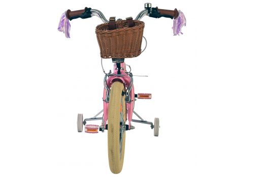 Veiligheid staat voorop! Daarom heeft deze gave fiets geen terugtraprem maar twee handremmen, afneembare zijwieltjes en een gesloten kettingkast. Ook aan het comfort is gedacht. De mooie roze Volare fiets heeft een comfortabel zacht zadel , een poppenzitje, vrolijke handvatversieringen en een handig rieten mandje. Om zo lang mogelijk van de fiets te kunnen genieten zijn het zadel en stuur in hoogte verstelbaar. Wordt geleverd inclusief al het montagemateriaal dat nodig is om de fiets in elkaar te zetten!