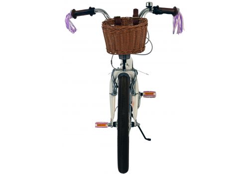 Veiligheid staat voorop! Daarom heeft deze gave fiets geen terugtraprem maar twee handremmen en een gesloten kettingkast. Ook aan het comfort is gedacht. De mooie witte Volare fiets heeft een poppenzitje, een comfortabel zacht zadel, een handig rieten mandje en fleurige handvatversiering. Om zo lang mogelijk van de fiets te kunnen genieten zijn het zadel en stuur in hoogte verstelbaar. Wordt geleverd inclusief al het montagemateriaal dat nodig is om de fiets in elkaar te zetten!