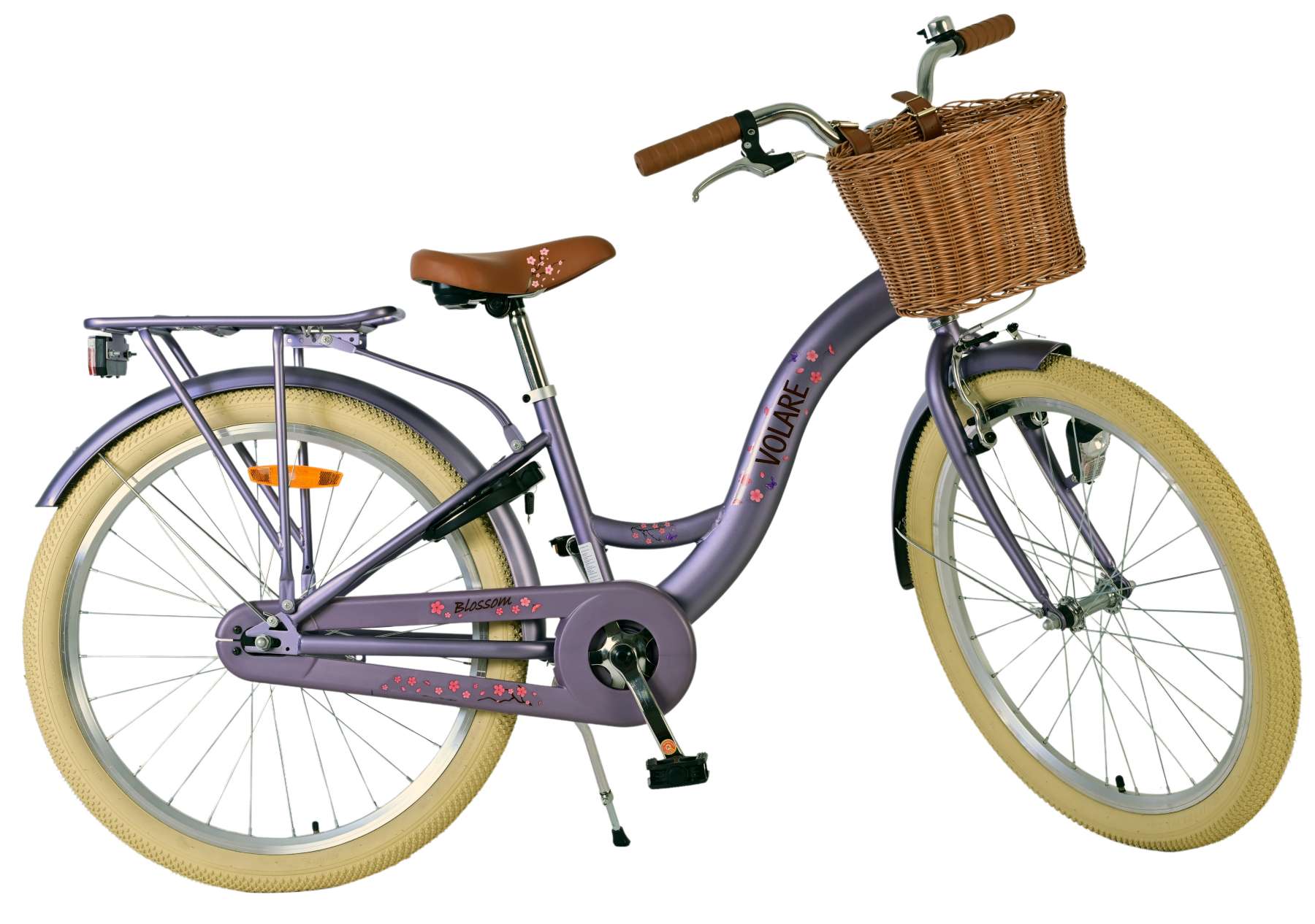 Deze 24 inch meisjesfiets in een paarse kleur, versierd met Blossom bloemetjes, is de perfecte fiets voor elke jonge fietser. De fiets is uitgerust met een handige standaard, zodat je hem makkelijk kunt neerzetten zonder dat hij omvalt. Dankzij de verlichting voor en achter ben je altijd goed zichtbaar in het donker of bij schemering. Het praktische mandje voorop biedt voldoende ruimte voor allerlei spullen.