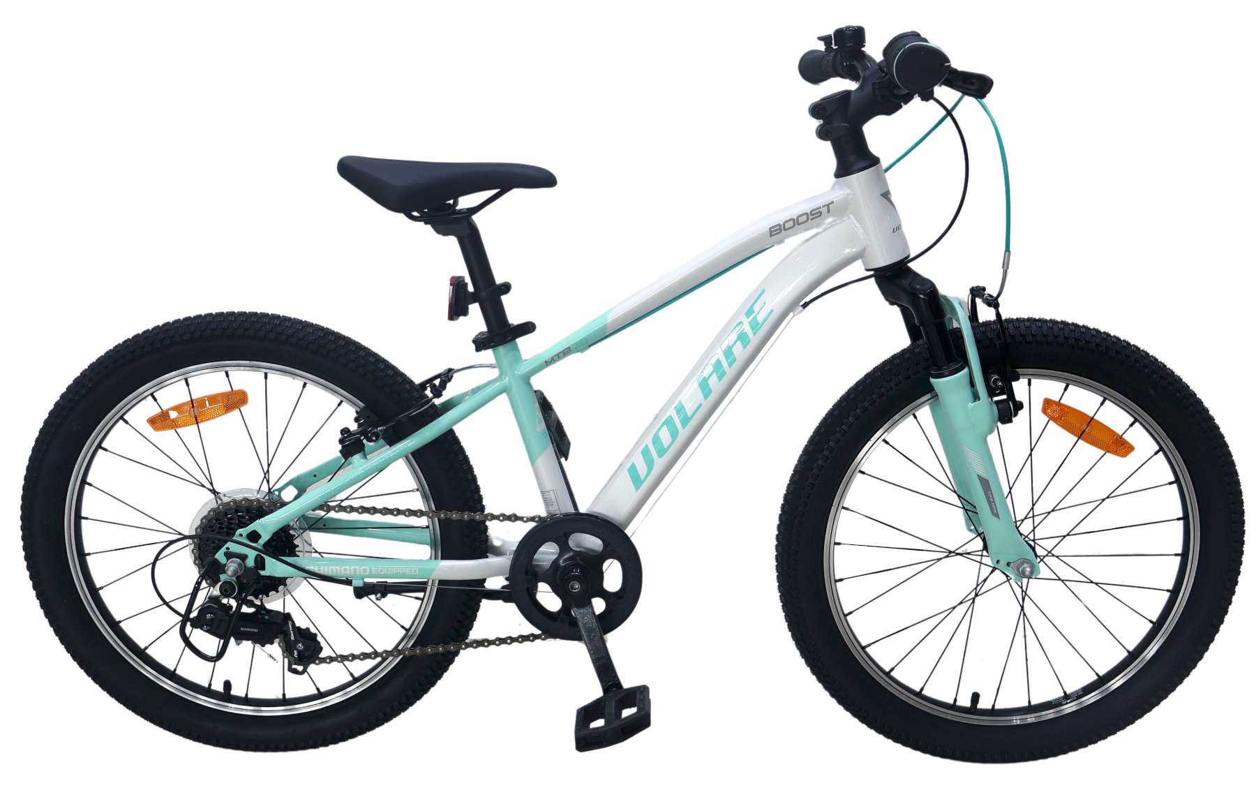 De Volare Boost 20 inch in wit met mintgroene accenten is een stoere, sportieve fiets voor kids die graag tempo maken én comfortabel willen rijden. Dankzij de 7 Shimano versnellingen schakel je soepel mee met elke rit, of je nu door de buurt fietst, een langere route maakt of tegenwind hebt.