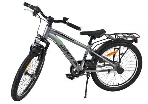 Ook aan praktisch gemak is gedacht: de grijze Volare fiets heeft een handige achterdrager om spullen eenvoudig mee te nemen, een zacht en comfortabel zadel, een stevige standaard én een stevig slot. Dankzij de extra lange zadelpen groeit de fiets langer mee met je kind. Let op: het stuur is niet in hoogte verstelbaar.